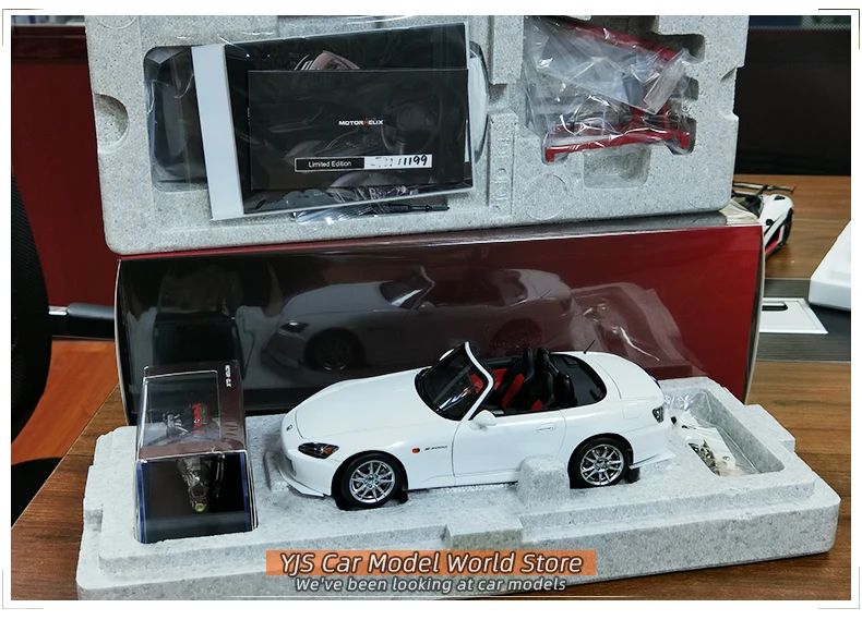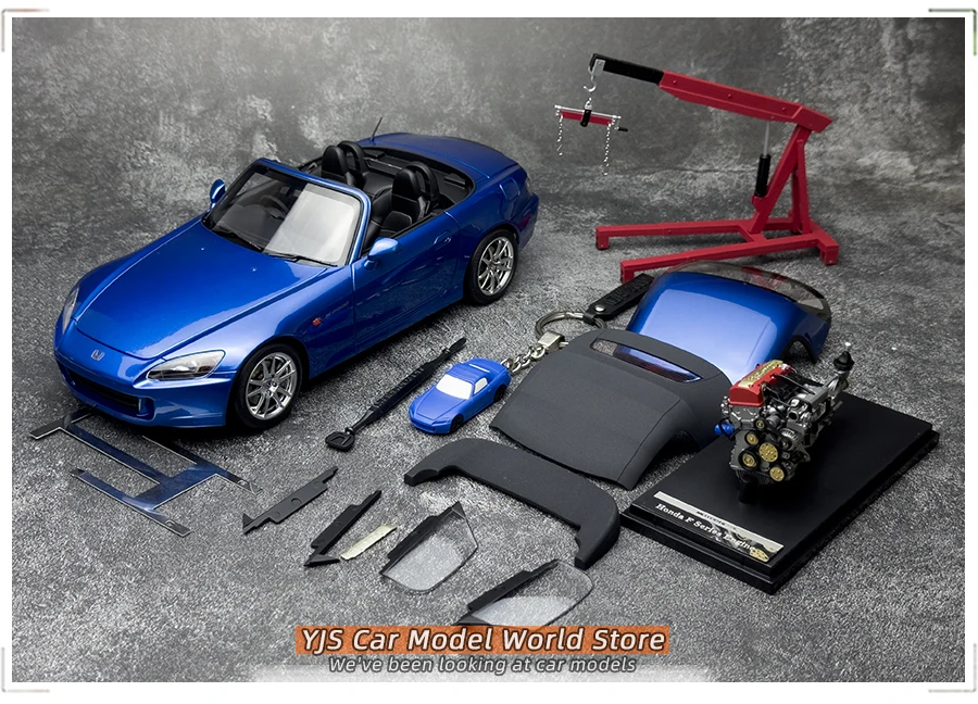 Attachments: The same scale independent structure F20C engine model x 1, engine hanger model x 1, license plate water sticker (different content) x 3 groups, limited collection card x 1, window replacement parts x 2, shed (hard soft top) x 2 / (hard top) x 1, hard top shed PE support model x 1 piece, 1:87 body color rubber material key chain x 1, door opener x 1.