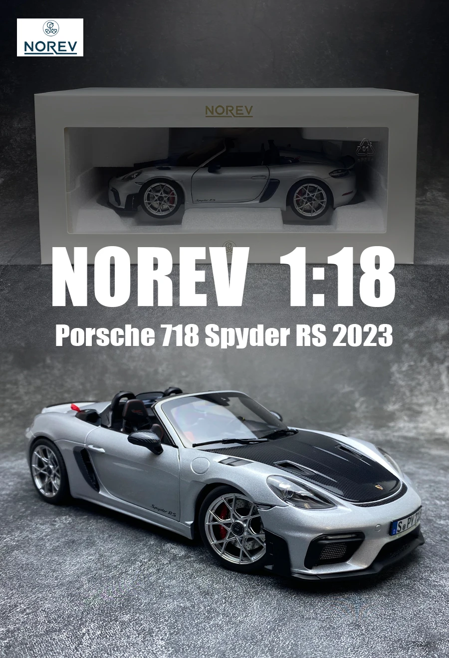 NOREV 1:18 Porsche 718 Spyder RS 2023 die cast model Car model Static decoration Holiday gift collection