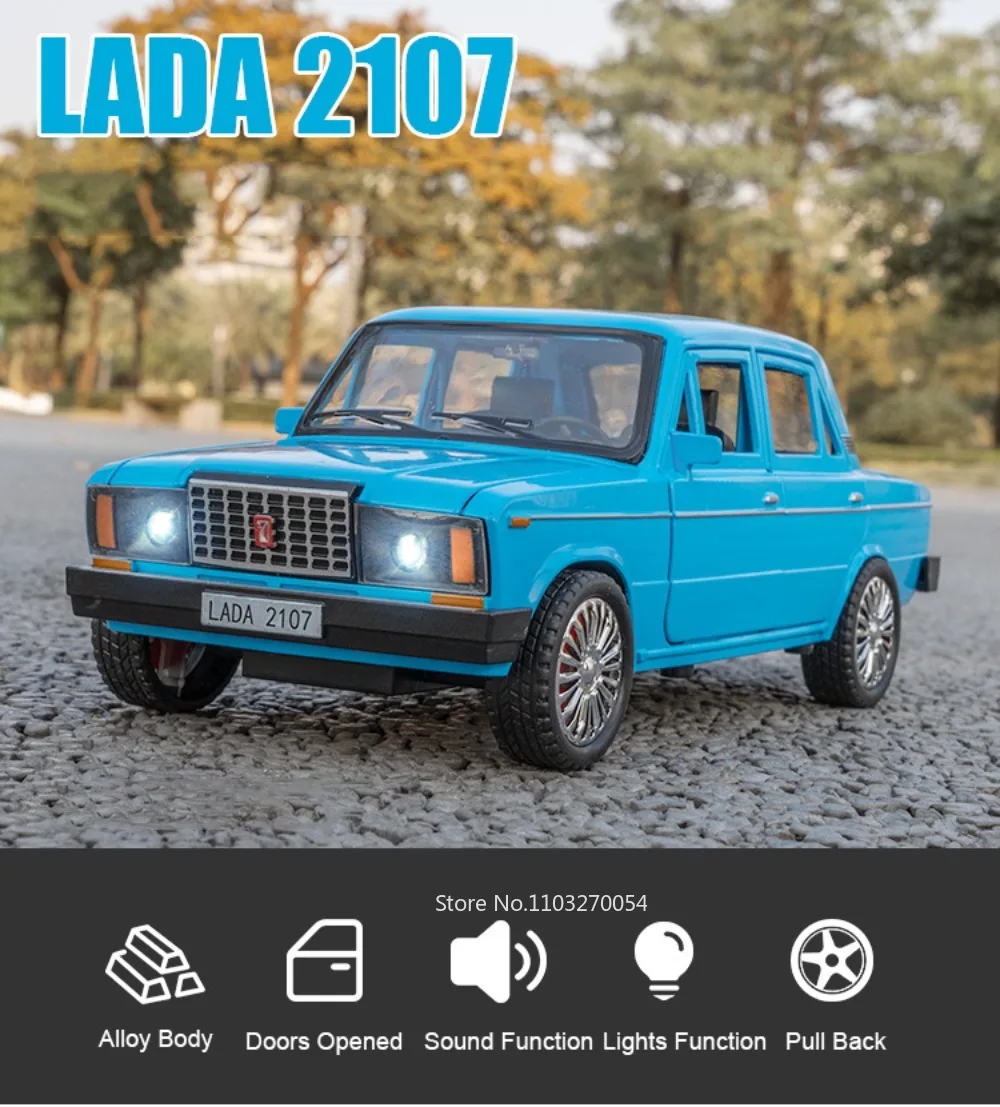 1:18 Russia LADA 2107 NIVA Alloy Diecast Models Toy Car 6 Doors Opened Sound Light Pull Back Vehice Collect Gift Children's Toys