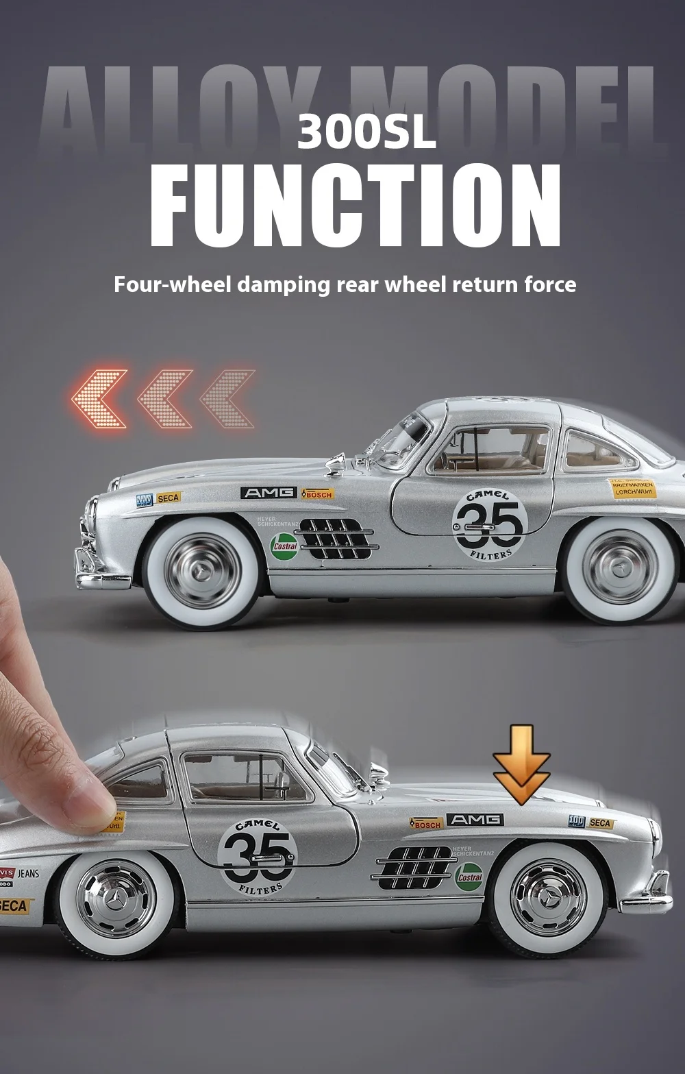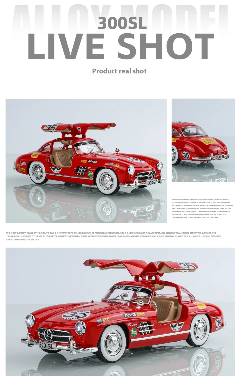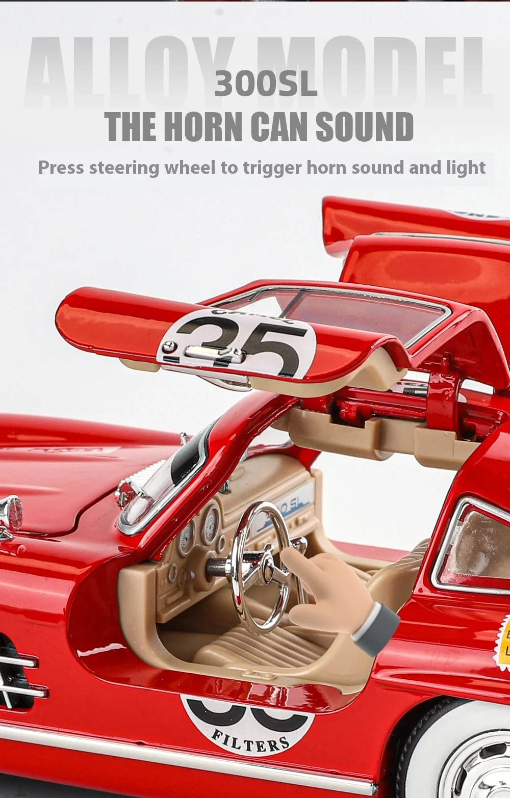 Perfect for Car Collectors: Whether your child is a budding car enthusiast or you're a collector yourself, this painted 300SL alloy car model is a must-have addition to any collection. Its exquisite detailing and authentic features make it a valuable piece that will be cherished for years to come.