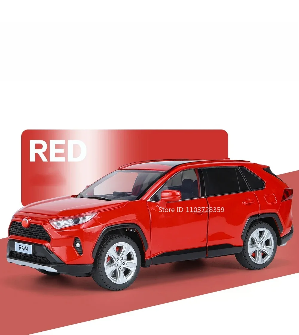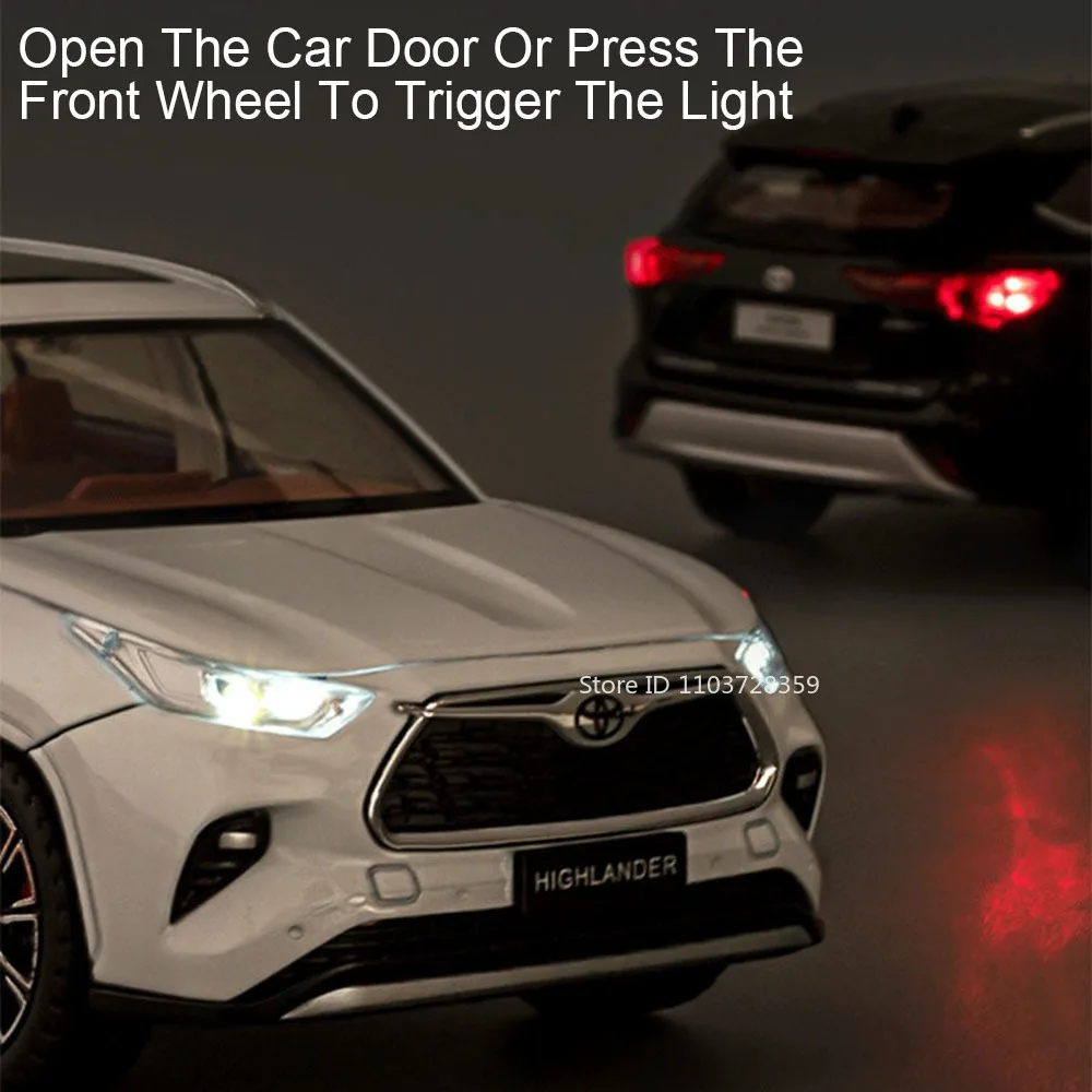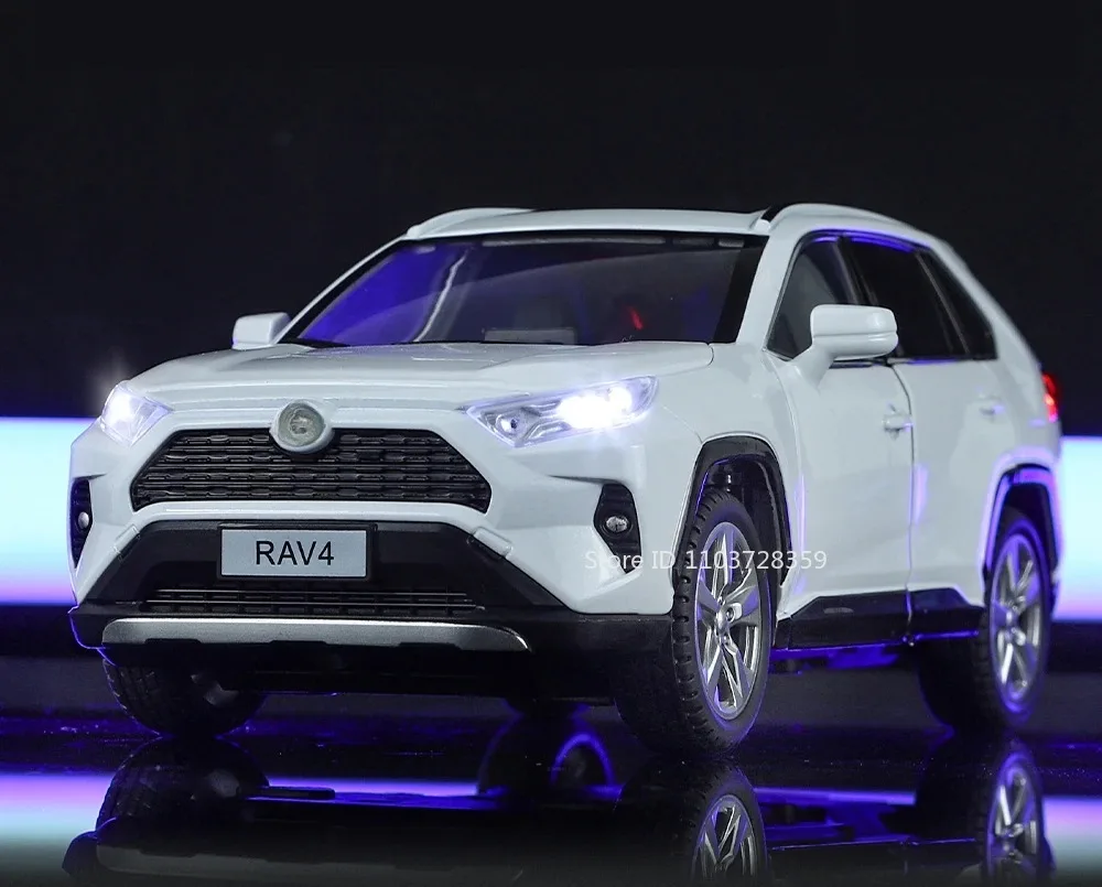 1:24 Scale Highlander RAV4 Toy Model Miniature Cars Alloy Diecast Sound Light Doors Opened Pull Back Shock Absorption Boys Gifts